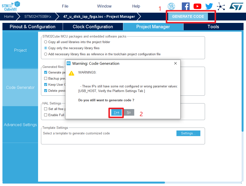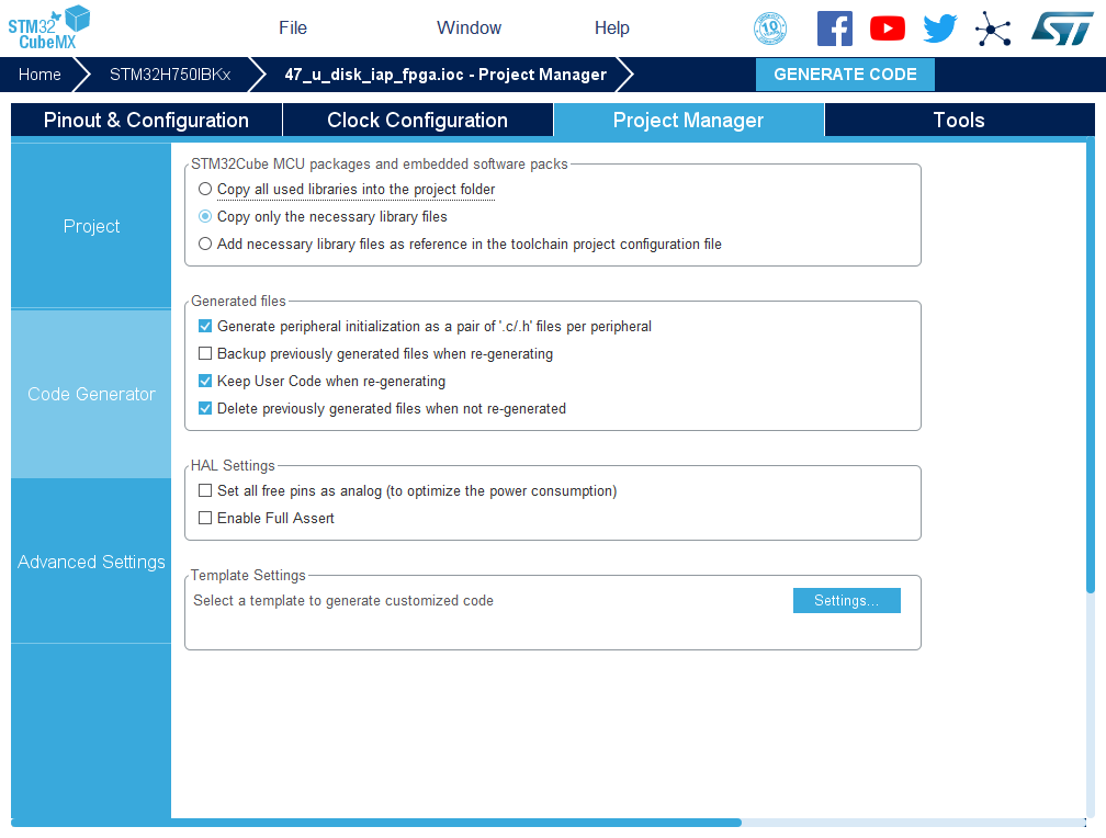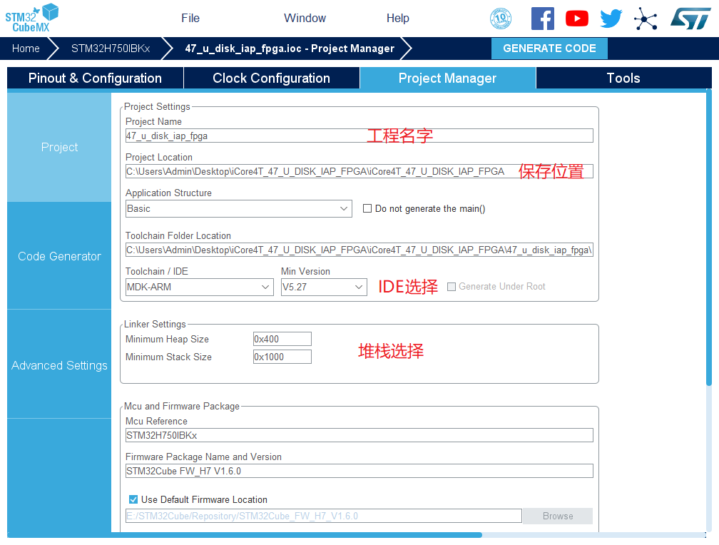 14.然后点击GENERATE CODE 创建工程 创建成功,打开工程。