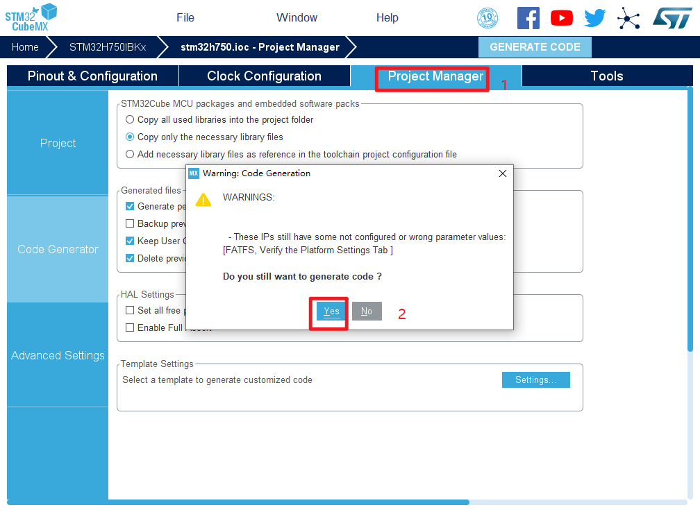 17.然后点击GENERATE CODE 创建工程 创建成功,打开工程。