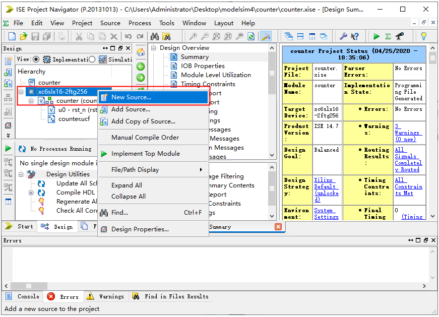 2.打开FPGA工程,右击,点击New Source。