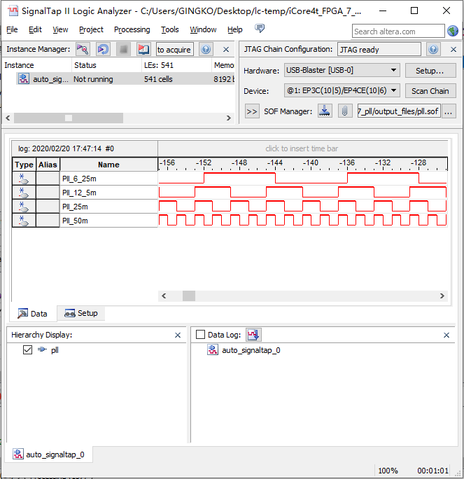 2. 更改相位和占空比,观察Signaltap采样结果由何不同。