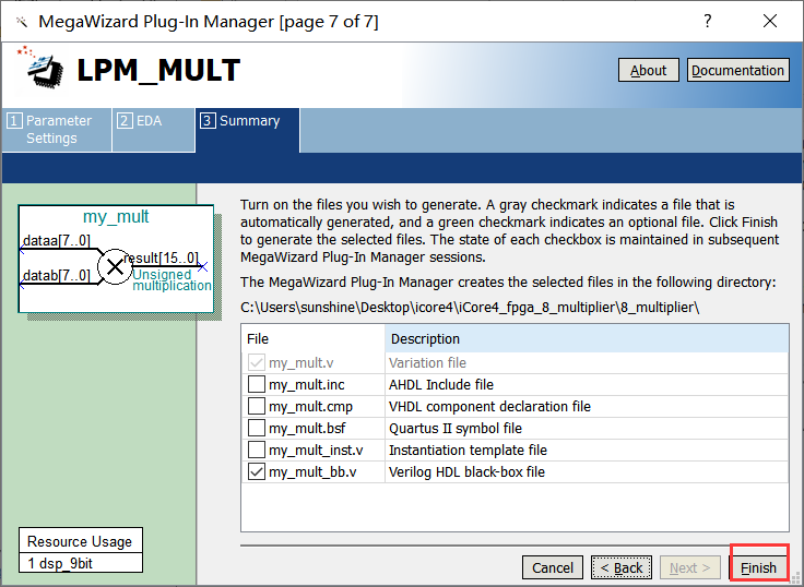 6、此时就完成了乘法器的创建。在程序中调用该乘法器即可实现乘法器功能。相关代码如下。