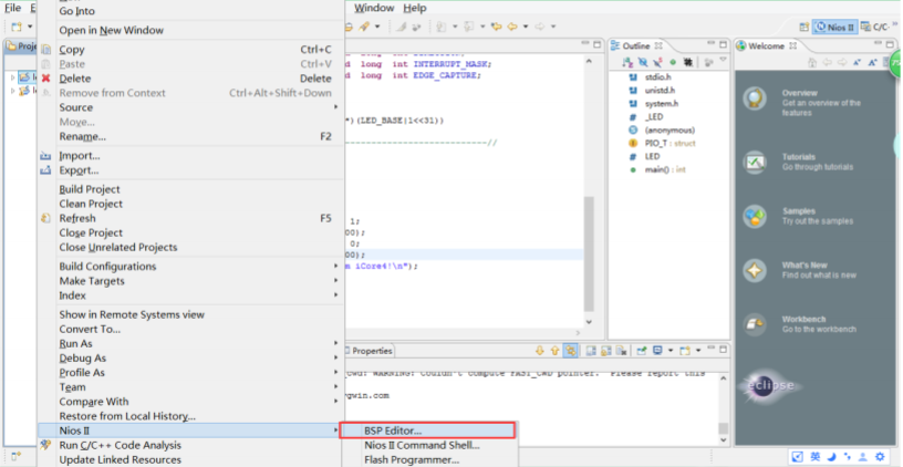 1、点击菜单栏中的Tools→NiosII Software Build Tools for Eclipse,打开NIOS 软件,选择正确的路径(与QuartusII工程路径一致),点击OK。