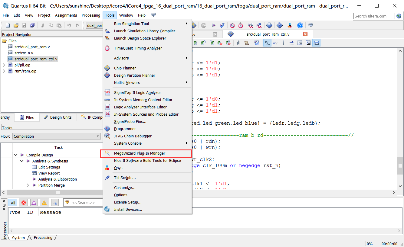 1、打开Tool →Megawizard Plug-In Manager,如图16-3所示。