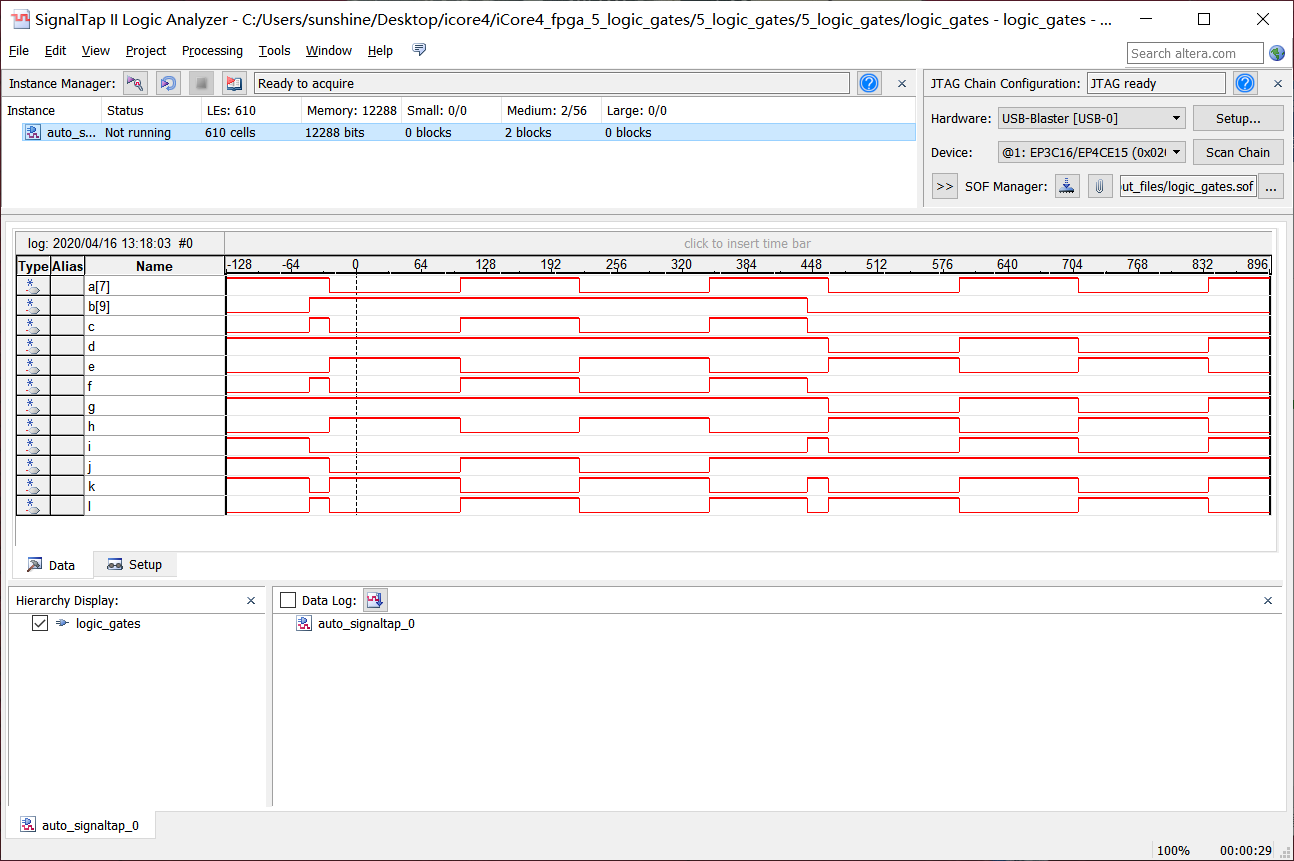 3、通过Signaltap工具对所有运算结果进行采集,采集结果如图5-2所示。