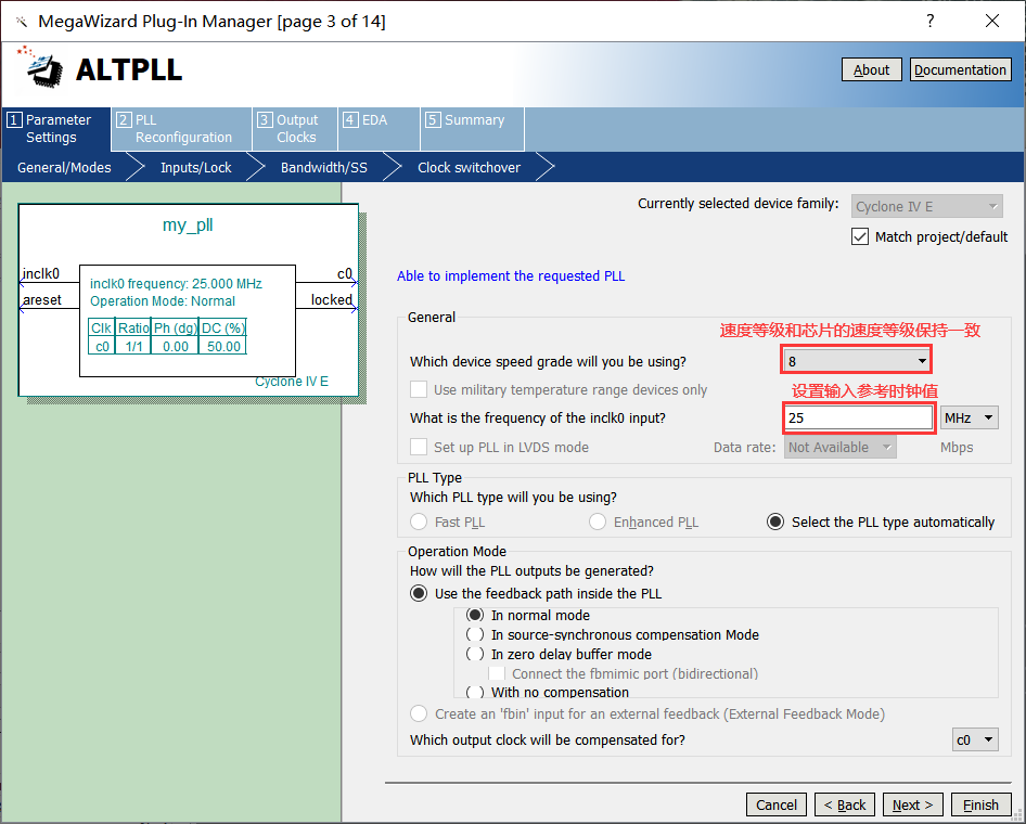 • FPGA内部锁相环的工作原理主要是通过调用内部IP核,改变IP核内部分频、倍频及相位差等参数,以此改变输入参考时钟的输出频率核相位,从而达到用户所需要的时钟信号驱动程序的运行。
