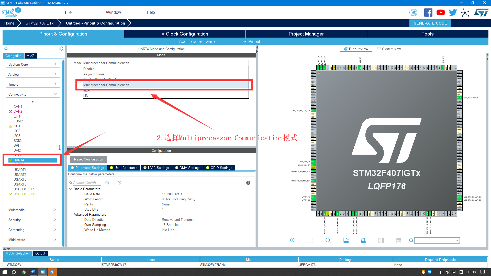 在搜索栏的下面,提供的各种查找方式,可以选择芯片内核、型号等等,可以帮助你查找芯片。本实验选取的芯片型号为:STM32F407IGTx。