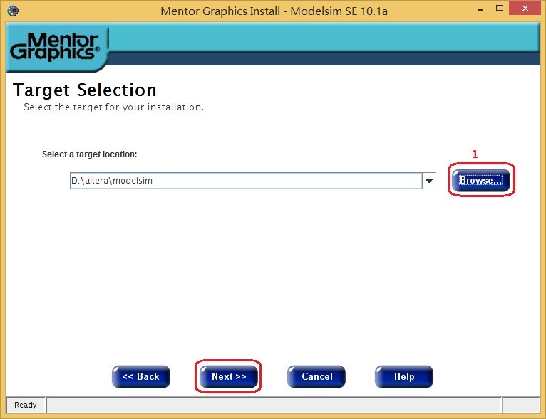 3、在框 1 处选择安装路径,然后点击 Next。