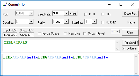 | LEDB\CR\LF | 蓝灯亮 | 蓝灯亮 |