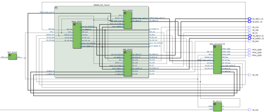 //--------------------Work_FSM-------------------------------// reg [2:0] Work_State_r = 3'd0;//工作状态寄存器 reg [8:0] cnt_clk_w = 9'd0;//工作状态时钟计数器 reg wr_sig; always @(posedge SDRAM_CLK or negedge RST_n) if (!RST_n) Work_State_r <= `Work_IDLE;//上电复位处于IDLE状态 else case (Work_State_r) `Work_IDLE: begin cnt_clk_w <= 9'd0; if (SD_Init_Done && SD_RD_Req) //初始化完成且 Work_State_r <= `Work_ACT_RD; //有读请求,进入读ACT状态 else if (SD_Init_Done && SD_WR_Req) //有写请求,进入写ACT状态 Work_State_r <= `Work_ACT_WR; else if (SD_Init_Done && REF_Req) //初始化完成且有刷新请求 Work_State_r <= `Work_AR; //进入刷新状态 else Work_State_r <= `Work_IDLE; end `Work_ACT_RD: begin if (cnt_clk_w == 9'd3)//ACT占用3个周期 begin cnt_clk_w <= 9'd0; //时钟计数器清零 Work_State_r <= `Work_RD; //根据读写信号 end //决定是进入WR状态还是RD状态 else begin cnt_clk_w <= cnt_clk_w + 1'd1; //自加1 Work_State_r <= `Work_ACT_RD; end end `Work_ACT_WR: begin if (cnt_clk_w == 9'd2) //ACT占用3个周期 begin cnt_clk_w <= 9'd0; //时钟计数器清零 Work_State_r <= `Work_WR; //根据读写信号 end //决定是进入WR状态还是RD状态 else begin cnt_clk_w <= cnt_clk_w + 1'd1;//自加1 Work_State_r <= `Work_ACT_WR; end end `Work_WR: begin//写状态 if (cnt_clk_w == 9'd258) //写状态占用258个周期,发送写命令滞后占用1个周期 begin //写操作占用256个周期,写入最后一个数据的同时 cnt_clk_w <= 9'd0; //发生BST(突发停止)命令,然后预充电占用1个周期 Work_State_r <= `Work_IDLE; end else begin cnt_clk_w <= cnt_clk_w + 1'd1; Work_State_r <= `Work_WR; end end `Work_RD: begin //读状态 if (cnt_clk_w == 9'd5) //读状态占用260个周期,发送读命令滞后占用1个周期 begin //CL延时占用3个周期,读操作占用256个周期 cnt_clk_w <= 9'd0; //BST和预充电命令在CL延时的3个周期内发送,不额外占用时间 Work_State_r <= `Work_IDLE;//读完成后进入空闲状态 end else begin cnt_clk_w <= cnt_clk_w + 1'd1; Work_State_r <= `Work_RD; end end `Work_AR: begin //自动刷新状态 if (cnt_clk_w == 9'd9) //占用10个周期 begin cnt_clk_w <= 9'd0; Work_State_r <= `Work_IDLE;//刷新完成后进入空闲状态 end else begin cnt_clk_w <= cnt_clk_w + 1'd1; Work_State_r <= `Work_AR; end end default: begin cnt_clk_w <= 9'd0; Work_State_r <= `Work_IDLE; end endcase