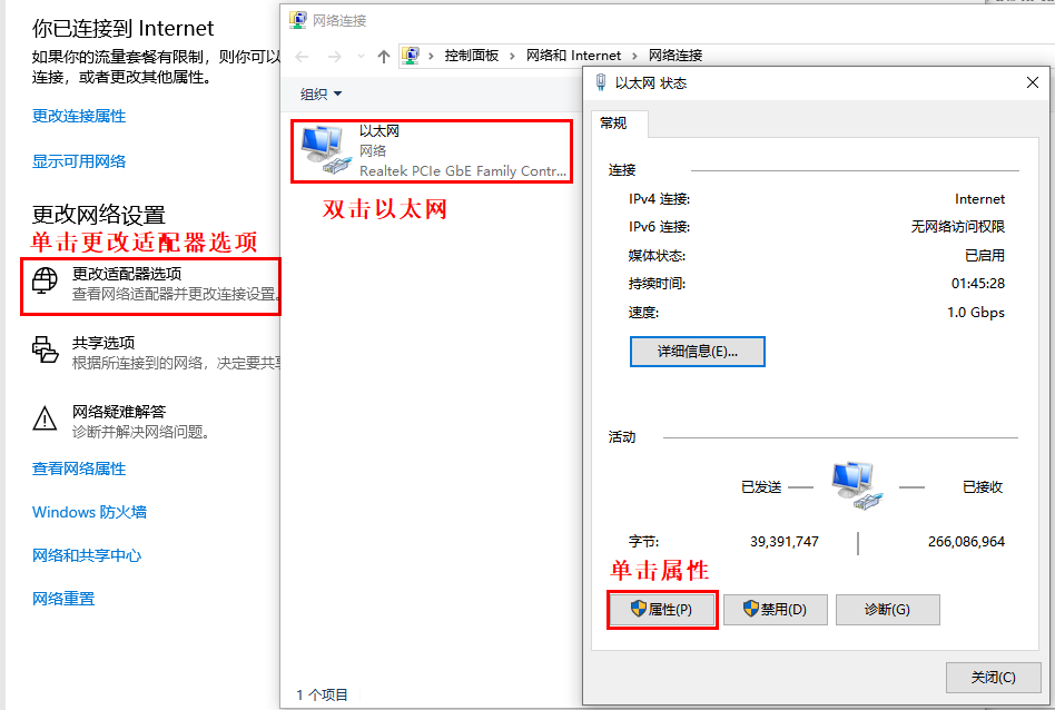 1、打开设置,网络和Internet,更改适配器选项,以太网,属性; 2、Internet协议版本4,选择使用下面的IP地址,网络配置信息如下图所示: