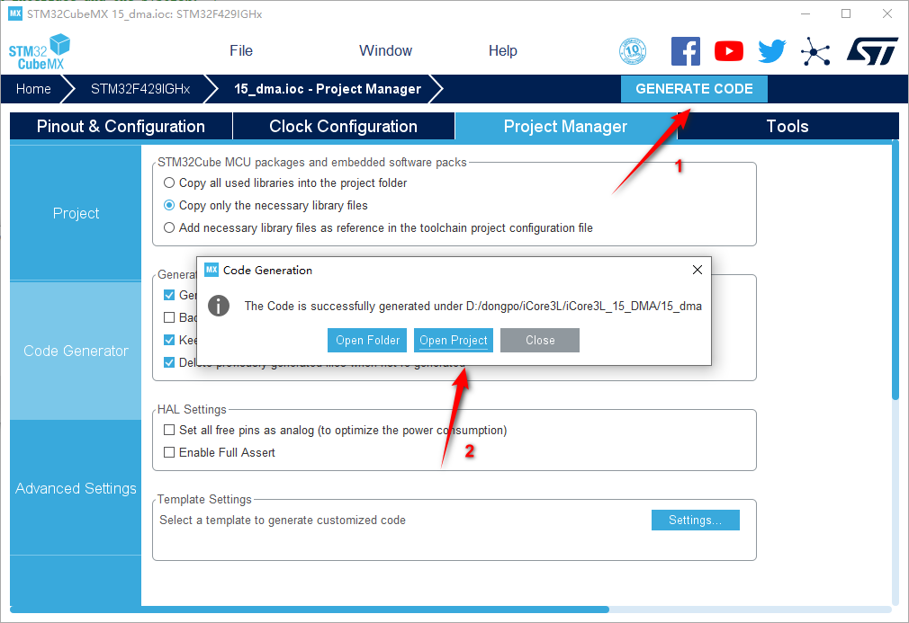 直接存储器访问(DMA),全称Direct Memory Access,用于在外设与存储器之间以及存储器与存储器之间提供高速数据传输。可以在无需任何CPU操作的情况下通过DMA快速移动数据。这样节省的CPU资源可供其它操作使用。