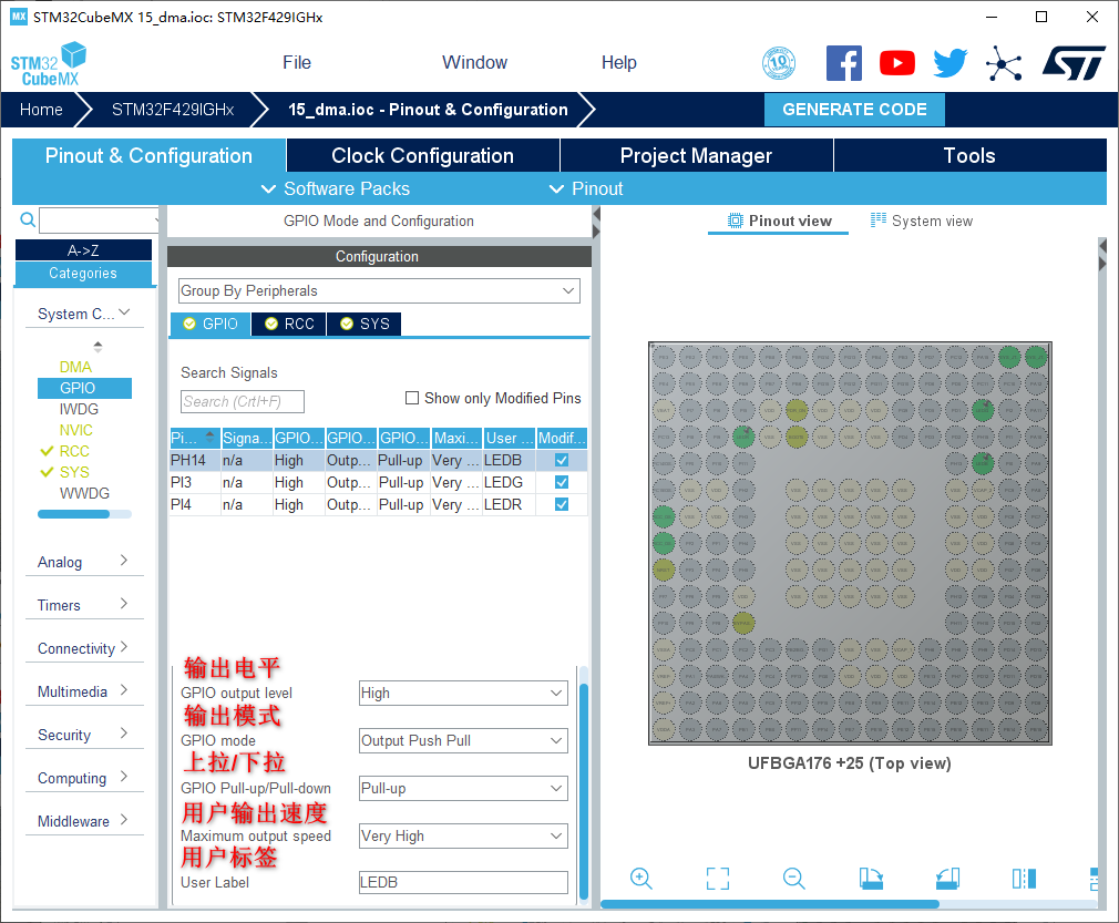 支持的外设:定时器,ADC,SPI,I2C,USART,DAC,I2S,SDIO和DCI