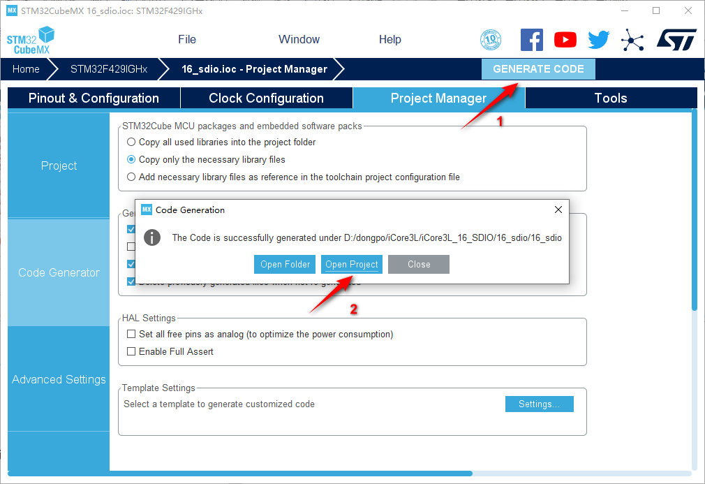 13.然后点击GENERATE CODE创建工程 创建成功,打开工程。