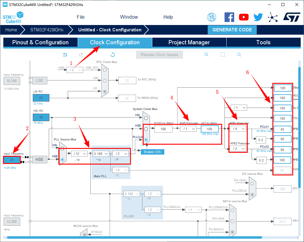 3.配置RCC,使用外部时钟源