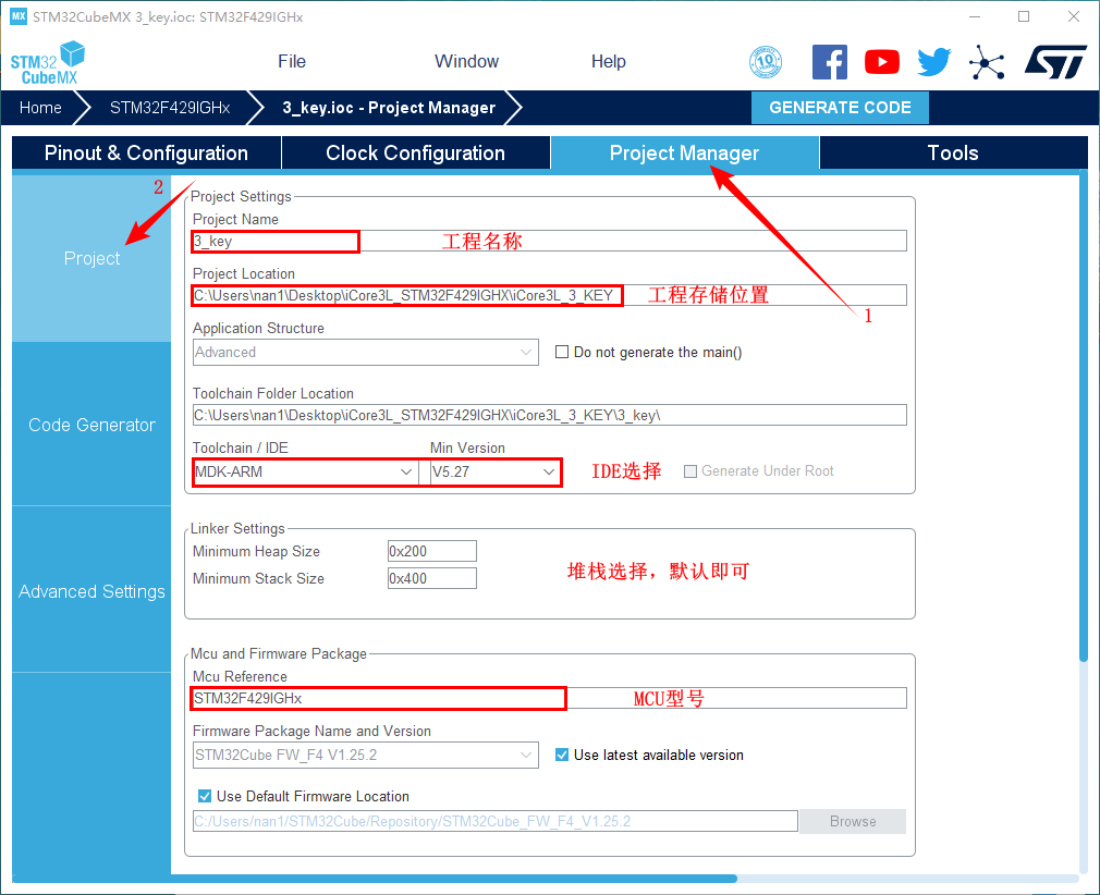 9. 工程文件的设置, 这里就是工程的各种配置。我们只用到有限的几个,其他的默认即可。 IDE我们使用的是 MDK V5.27