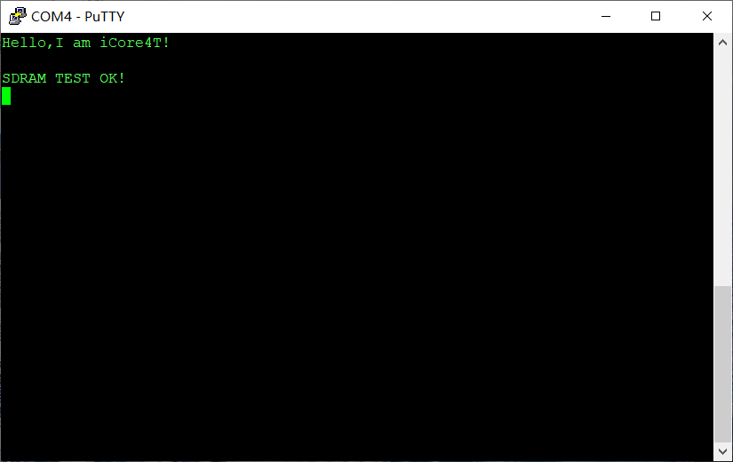 SDRAM读写测试成功,LED常亮,并在终端显示出“SDRAM TEST OK!”。测试失败LED灯闪烁,并在终端显示“SDRAM ERROR!”