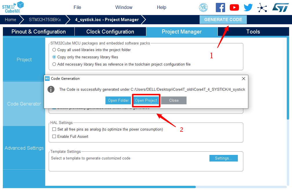 12.然后点击GENERATE CODE 创建工程