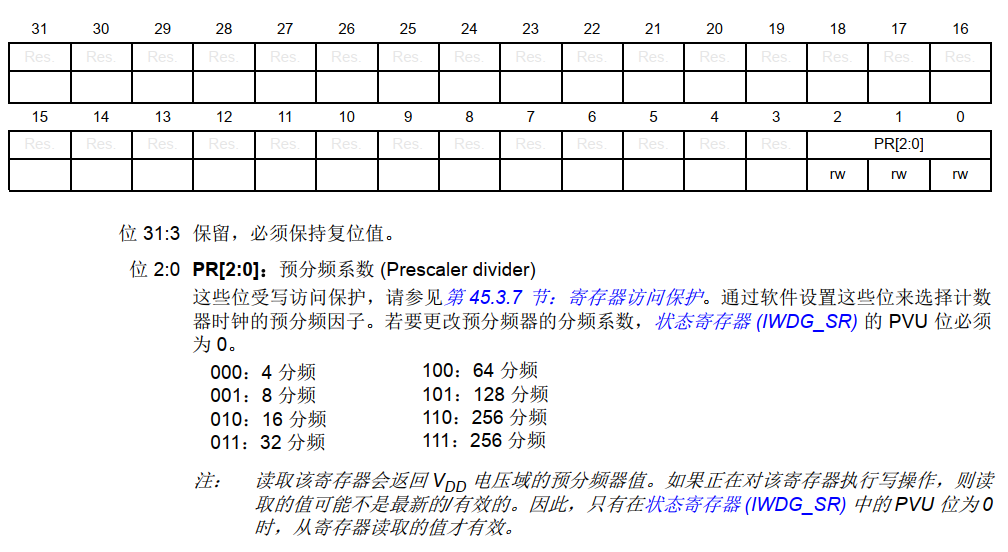 void MX_IWDG1_Init(void) { hiwdg1.Instance = IWDG1; hiwdg1.Init.Prescaler = IWDG_PRESCALER_32; //预分频系数 hiwdg1.Init.Window = 4095; //窗口值 hiwdg1.Init.Reload = 2000; //重装载值 if (HAL_IWDG_Init(&hiwdg1) != HAL_OK) { Error_Handler(); } }