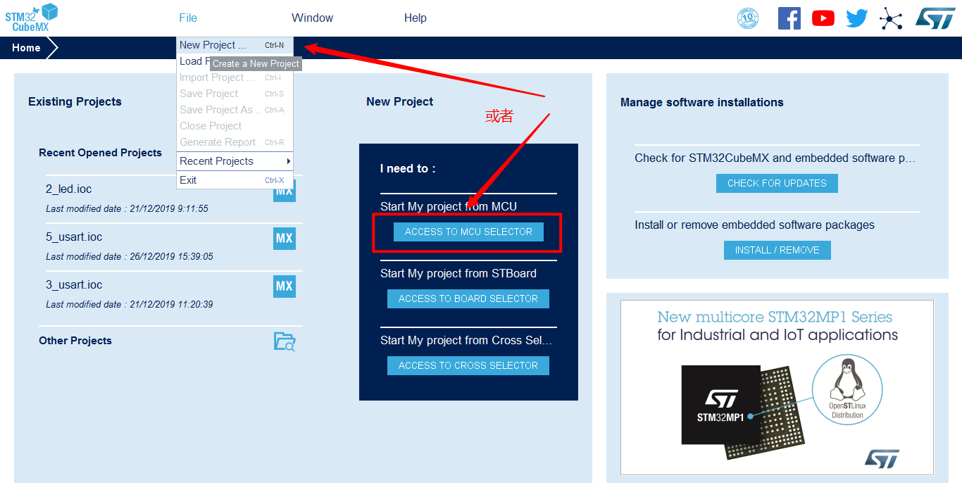 1.在主界面选择File–>New Project 或者直接点击ACCEE TO MCU SELECTOR