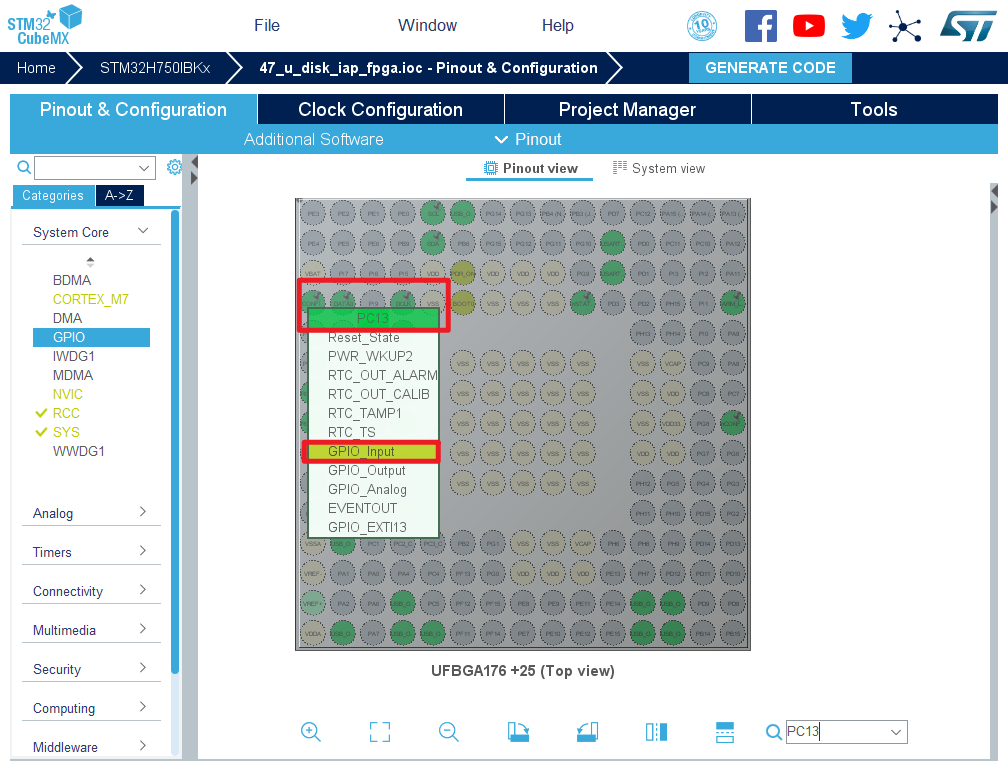 5.将PA10,PB7,PB8,PD4,PI4,PI8设置为GPIO_Output,PC13,PD4设置为GPIO_Input