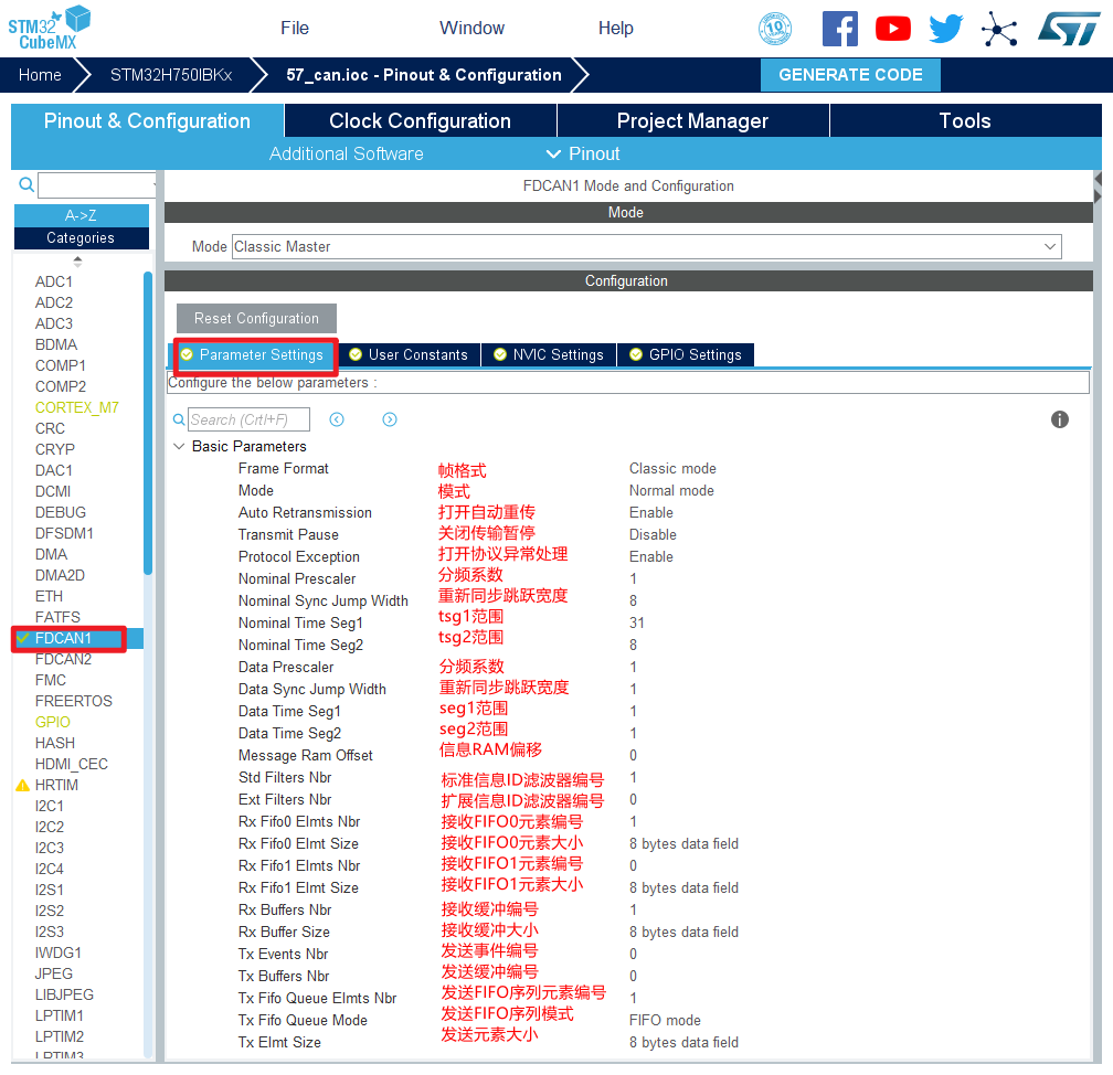 hfdcan1.Init.StdFiltersNbr = 1;//标准信息ID滤波器编号