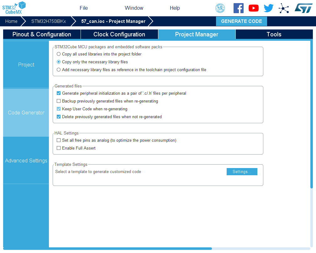 10.点击Code Generator,进行进一步配置