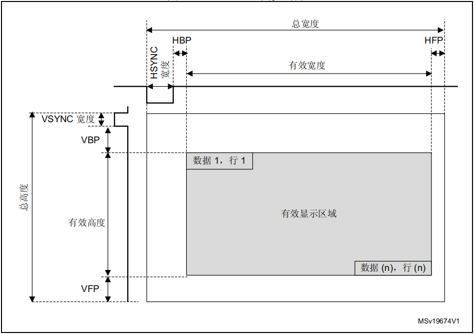 • VSYNC width垂直同步宽度设置,以LCD_CLK的像素时钟输出为单位。