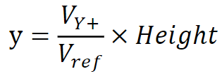 1. 算Y坐标时,在Y+电极施加驱动电压Vref,Y-极接地,所以Y+与Y-处形成了匀强电场,而触点处的电压通过X+电极采集得到,由于ITO层均匀导电,触点电压与Vref之比等于触点Y坐标与屏高度之比,从而: