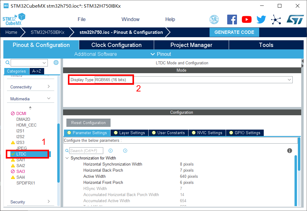 typedef struct { uint32_t HSPolarity; uint32_t VSPolarity; uint32_t DEPolarity; uint32_t PCPolarity; uint32_t HorizontalSync; uint32_tVerticalSync; uint32_t AccumulatedHBP; uint32_t AccumulatedVBP; uint32_t AccumulatedActiveW; uint32_t AccumulatedActiveH; uint32_t TotalWidth; uint32_t TotalHeigh; LTDC_ColorTypeDef Backcolor; } LTDC_InitTypeDef;