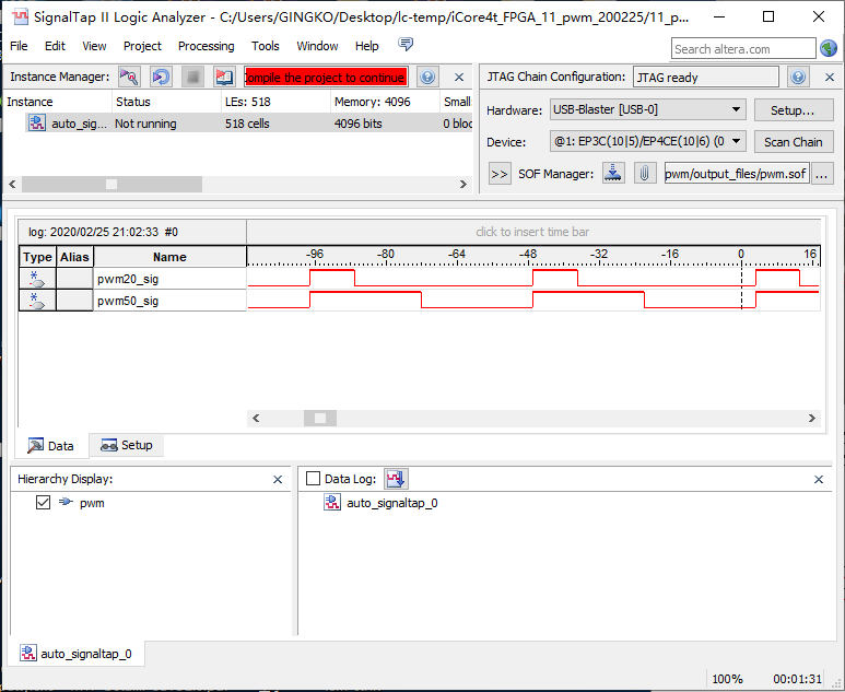 1、改变cycle和puty参数,观察信号变化。
