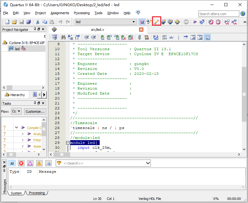 • 本实验的主要目的是根据led的驱动原理编写led控制程序,通过编写简单的led驱动代码使用户对Quartus的基本使用方法有简单的了解