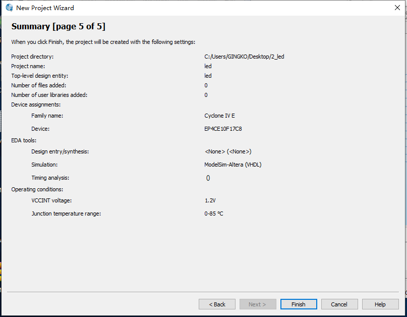 3、直接点击Next,如图2.4所示。 图2.4 4、在此界面选择工程存放的路径,设置工程名及顶层文件名称,如图2.5所示。 图2.5