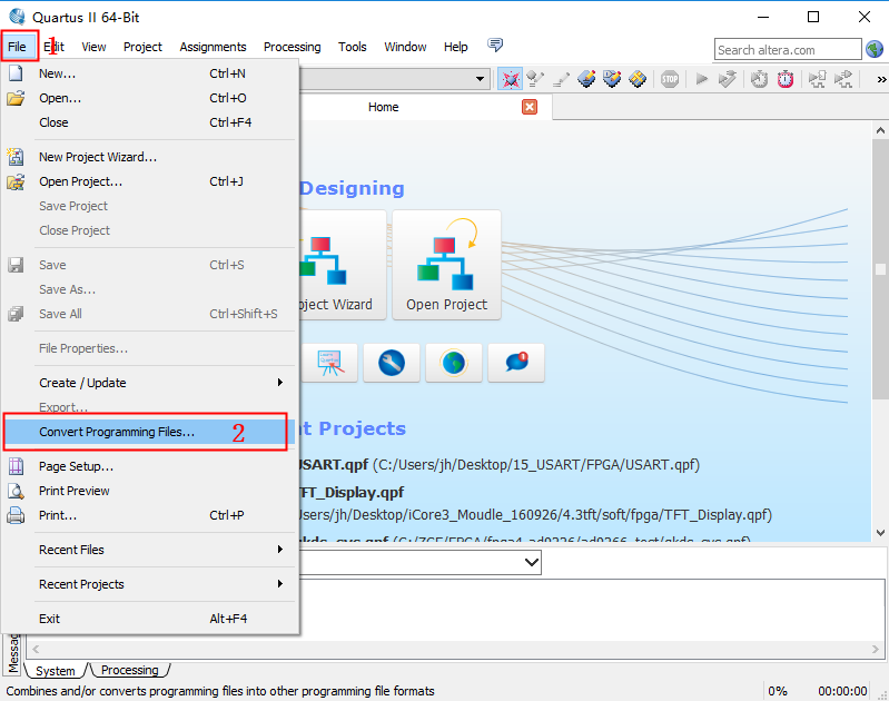 1、打开Quartus II 13.1,点击file,在下拉菜单中选择Convert Programming Files,如下图所示。