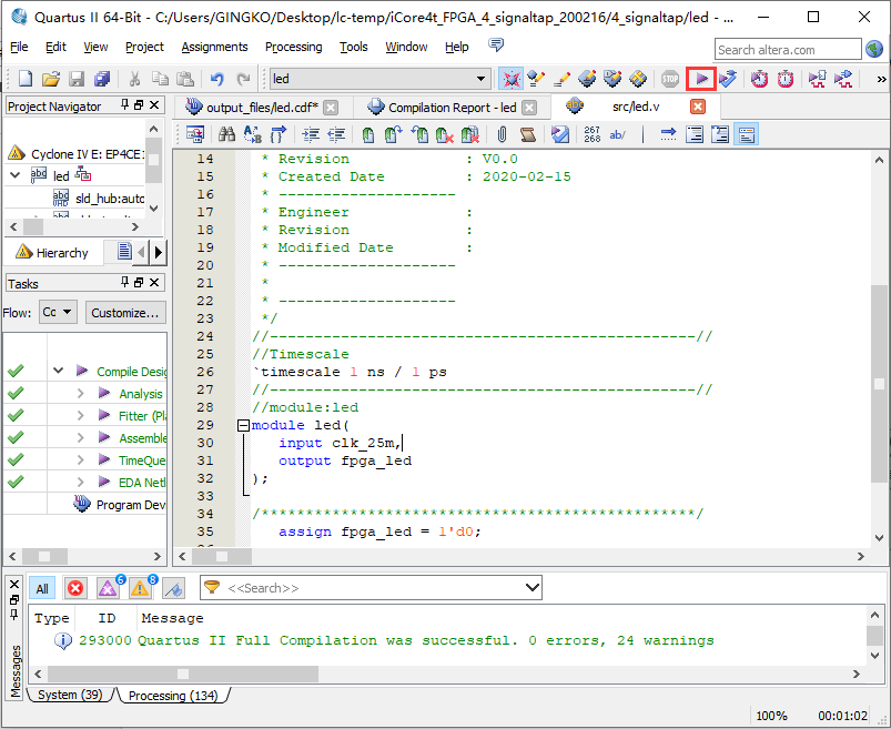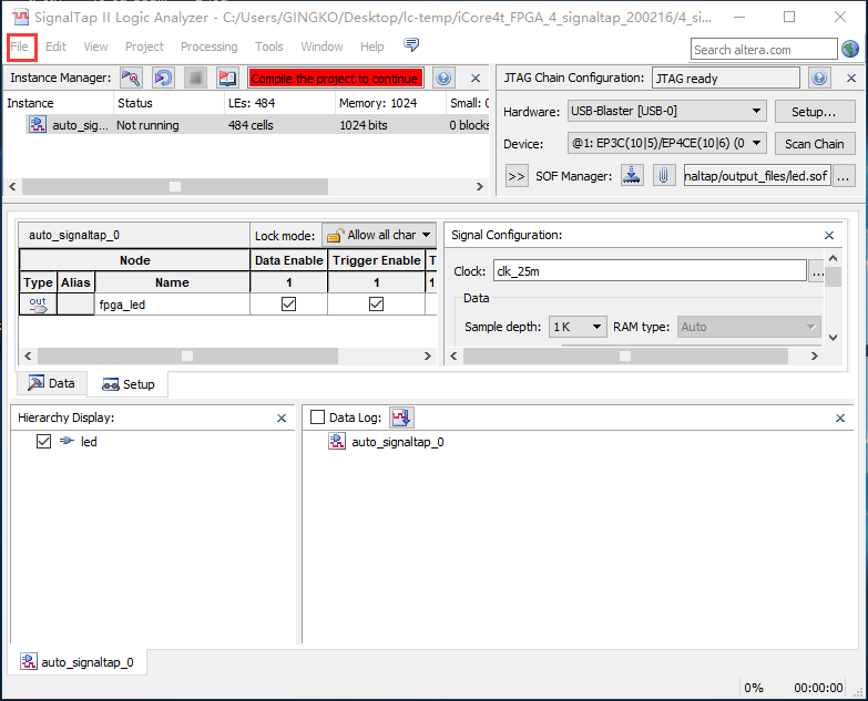 以led驱动程序为例,通过使用signaltap工具查看led信号的状态,使用户掌握signaltap的基本使用方法。