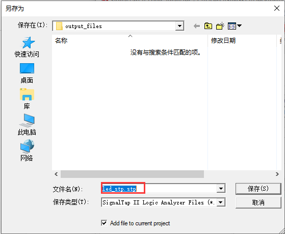 4、添加目标仿真文件(.sof),一般该文件存放在output file文件夹下,如图4.4所示。 图4.4