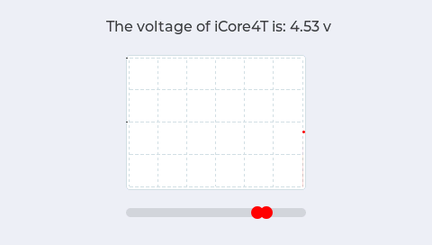 下面的例子实现的功能为,从ADC读取iCore4T电源电压值并以折线图的形式绘制在图表中,上方的文本显示当前电压值,下方的滑块可以调节当前y轴的显示区间[0v,6v]。