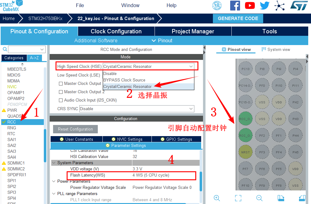 9.时钟源设置,选择外部高速时钟源,配置为最大主频