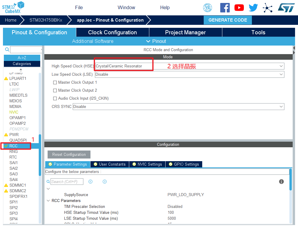7.时钟源设置,选择外部高速时钟源,配置为最大主频