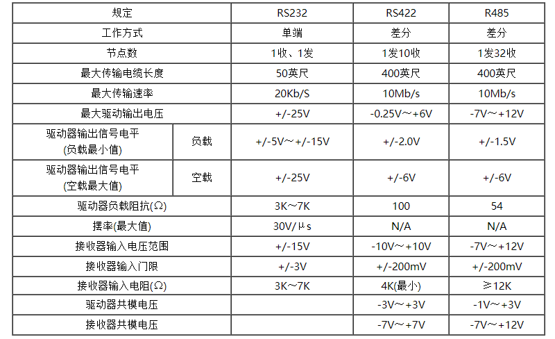 RS-485是RS-422的扩展集,对这些能力进行了扩展。RS-485解决了RS-422处理多点通讯的限制,通过同一数据线通信时最多允许32个设备。RS-485总线上的任意从设备都可以与任意其他32个从设备进行通信,无需经由主设备。由于RS-422是RS-485的子集,因而所有RS-422设备可能受RS-485控制。