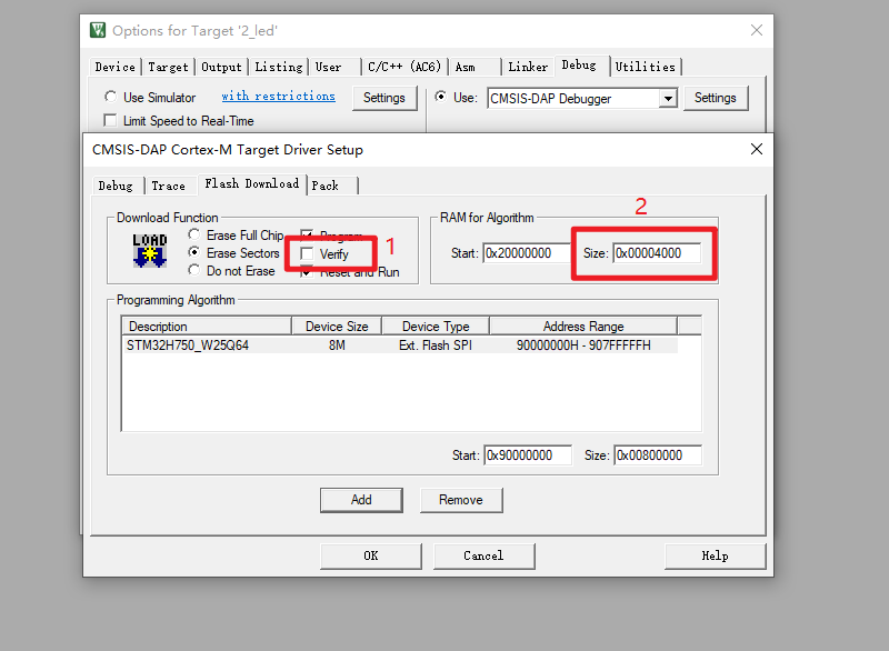 • 绝大部分 STM32 系列芯片内部都具有 FLASH 存储器用于存储程序,安装芯片包后即自带相应的 FLASH 下载算法,在工程里直接选择即可。而 STM32H750 系列芯片内部只有一个 128KB 的 FLASH 存储器, 代码量稍微大一点就放不下了,所以其程序代码需要存放在外部的存储器中,使用时需要自己提供对应FLASH 的下载算法给 KEIL 软件。