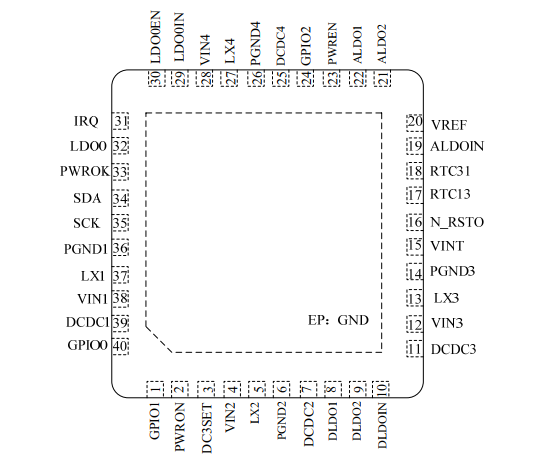 • GPIOLDO:low noise LDO, 1.8-3.3V 可调节,100mV/step, 驱动能力 20mA