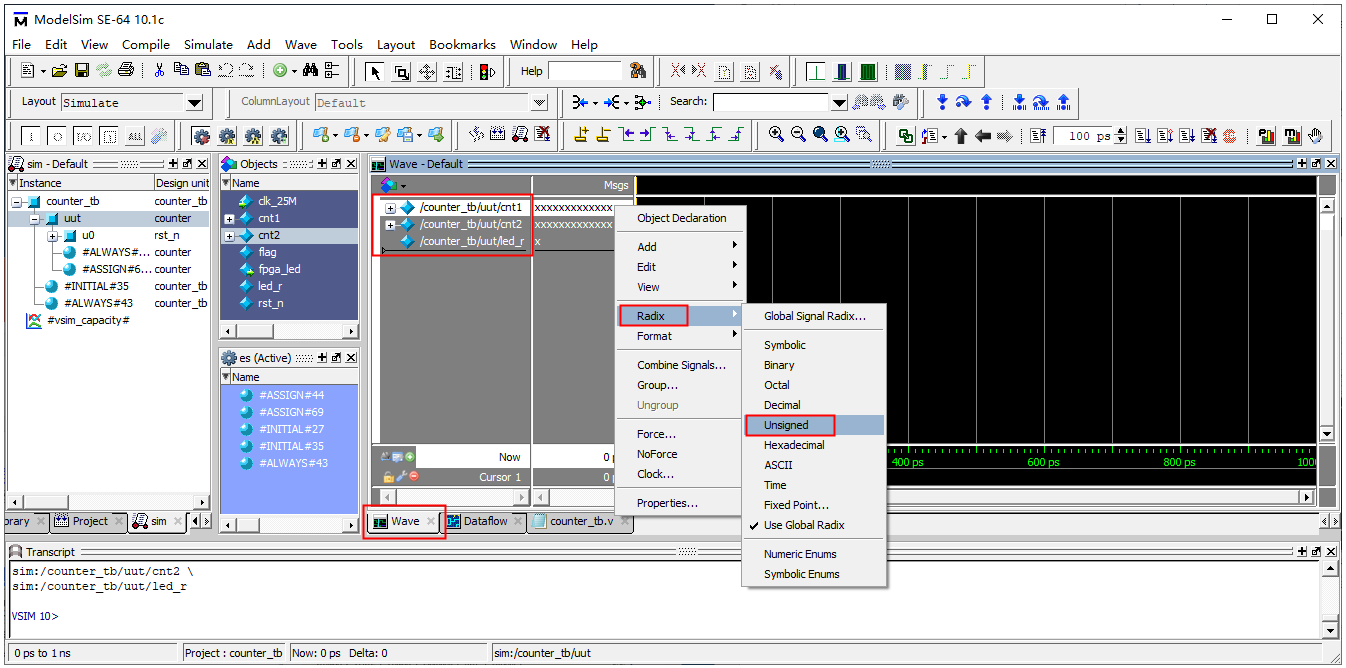 学习建立Modelsim工程并对Xilinx FPGA工程进行仿真。