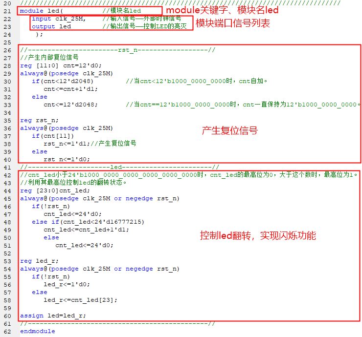 • 本实验以点亮FPGA_LED,并控制其闪烁作为主要目标,在此基础上根据led的驱动原理,建立工程、编写led控制程序、配置GPIO。通过本实验,学习零基础构建FPGA工程并驱动LED闪烁的过程。