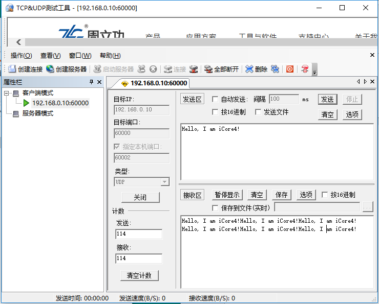 打开TCP&UDP测试工具;(安装及使用方法见附录);