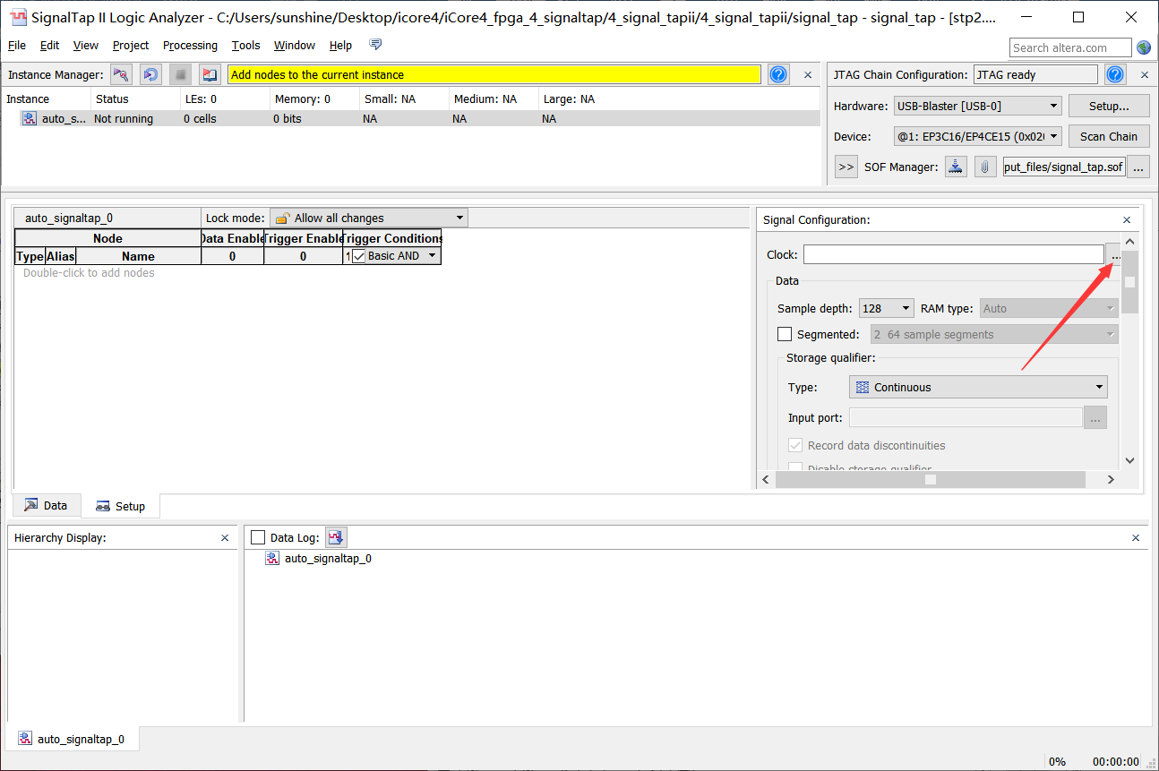 13、回到Signaltap界面点击下载按钮下载程序,如图4-13所示。
