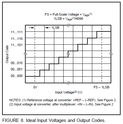 图31-4 理想状态下ads7843输入电压和输出编码之间的对应关系图