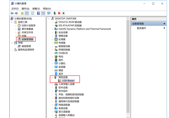 在电脑上连接FPGA的USB-Blaster下载器的时候,可能会出现无法在此设备上加载驱动问题,可以通过以下方式解决:首先这里如果驱动没有安装好,会有感叹号标志!
